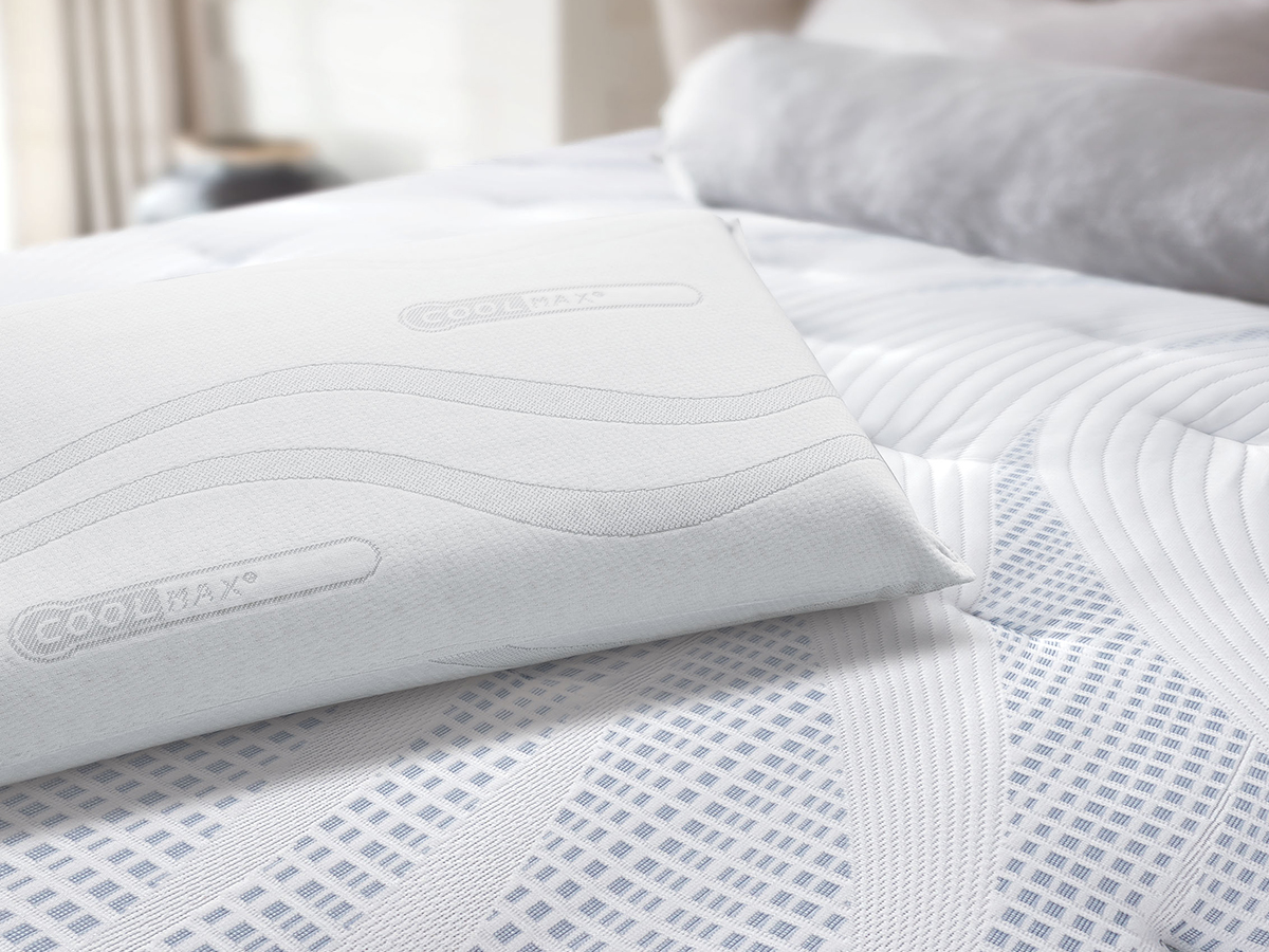 綺力枕再進化,不僅以微型60個獨立筒彈簧和釋壓記憶膠合力為您的頭-頸-肩撐托最舒適的曲線,更採用專利吸濕排汗特殊科技纖維製成的Coolmax®面料精製而成,以最快速度將皮膚濕氣迅速排至纖維表層,常保透氣乾爽舒適。Beautyrest® Coolmax® WonderPillow悠涼透氣綺力枕,讓您睡得清爽自在更舒爽。