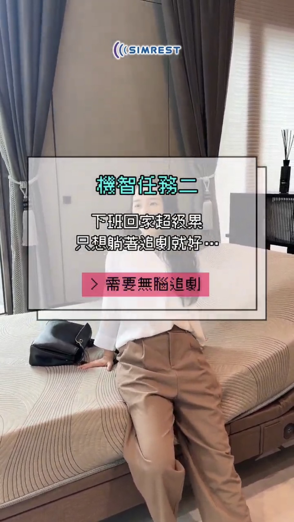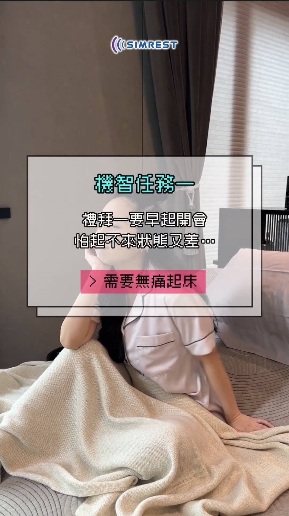 專屬SIMREST的APP應用程式,內建遙控器、鬧鐘功能。設定要起床或就寢的鬧鐘,一到指定時間就自動運作!